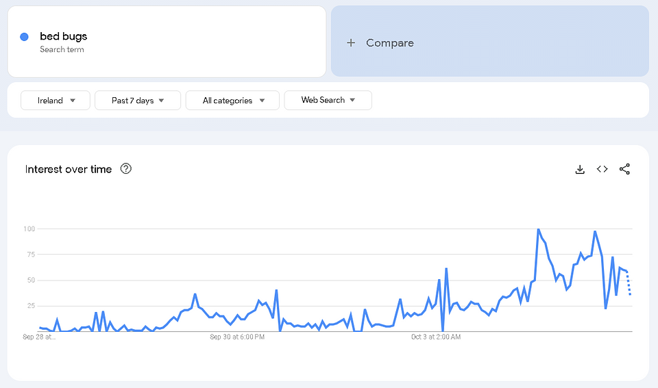 The team at Brosnan Facility Management can reveal that Google searches for “Bed bugs” have increased 2400% across Ireland in the past 7 days, while there’s also been a 614% increase in searches for the term “Paris Bed Bugs”